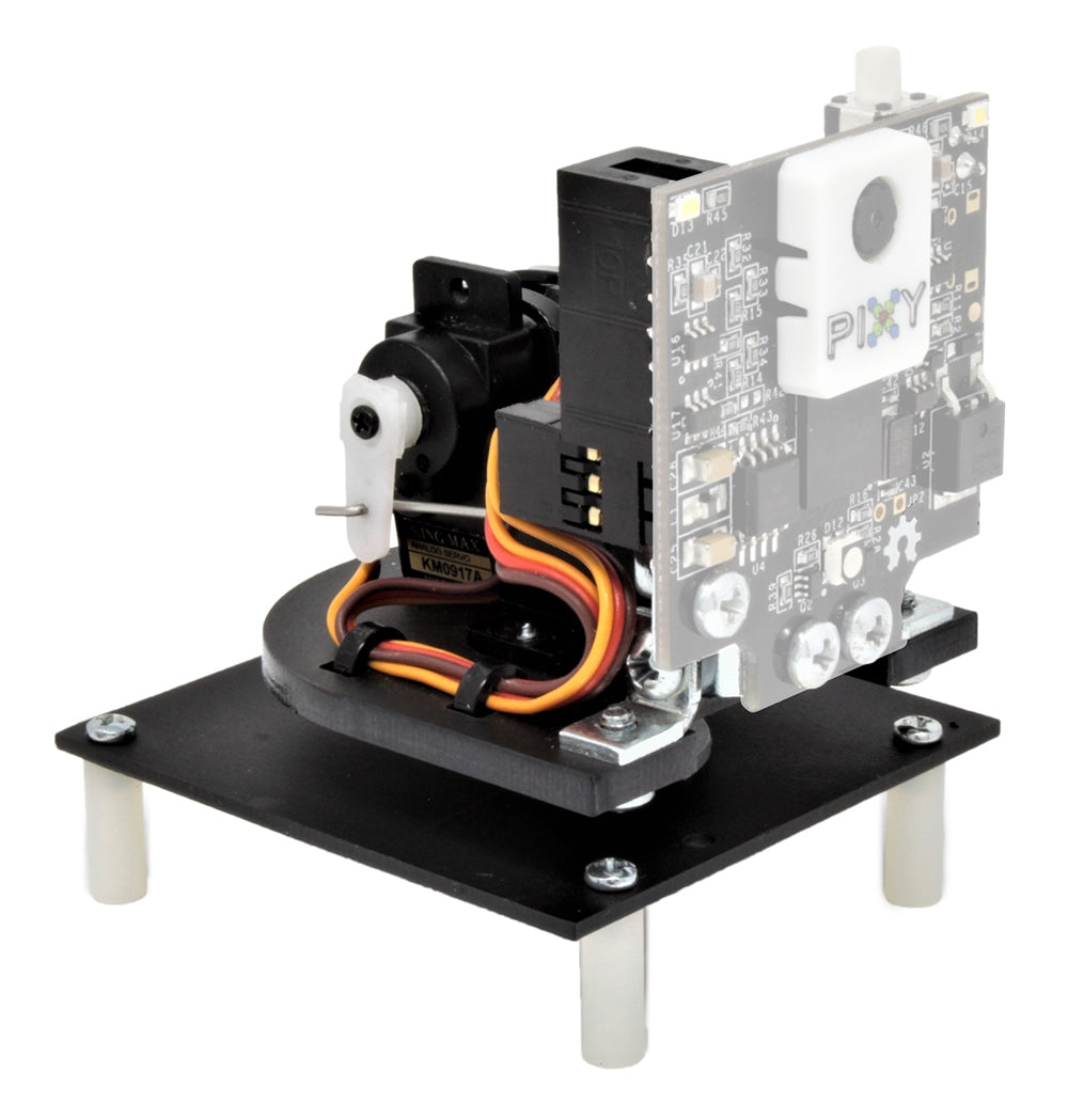 The Charmed Labs Pan/Tilt Kit for Pixy 2 CMUcam5 Image Sensor makes a great “hello world” application for Pixy2. It’s easy to assemble and it gives your Pixy2 something to do: look around! The pan-tilt mechanism for Pixy2 is redesigned. It’s smaller and faster than the pan-tilt for the original Pixy.