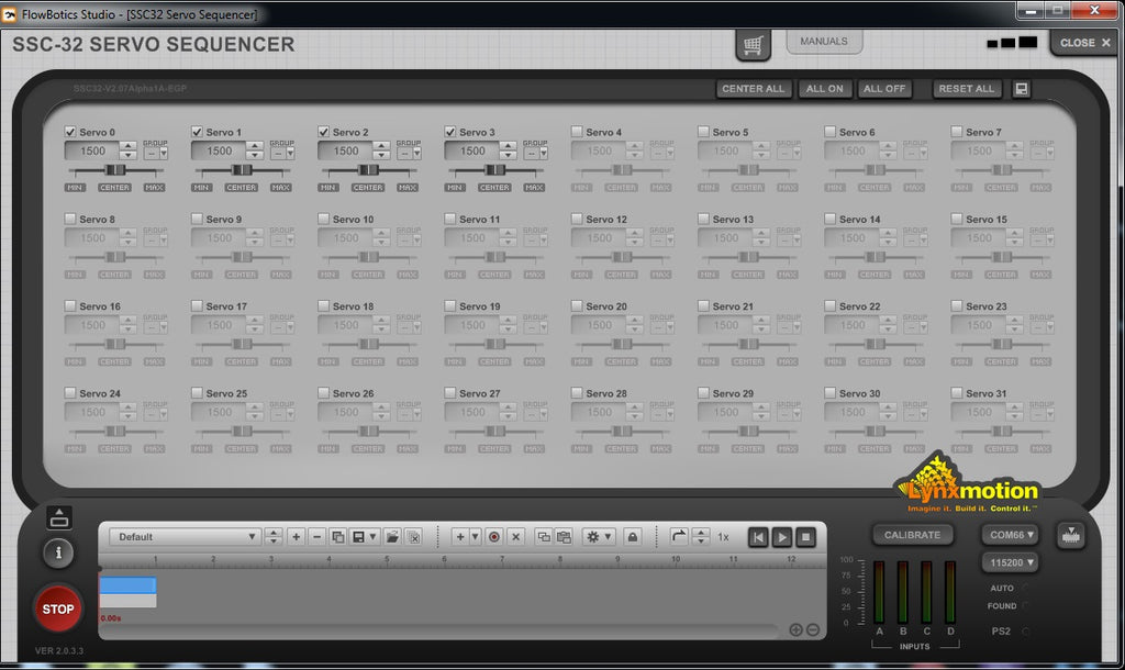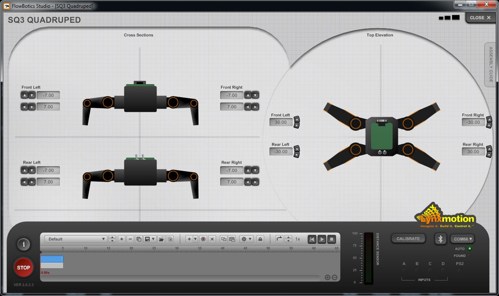 Use FlowBotics Studio to control your hobby robotics, using the pre-made demo projects for many of the Lynxmotion kits or build your own projects just for fun.