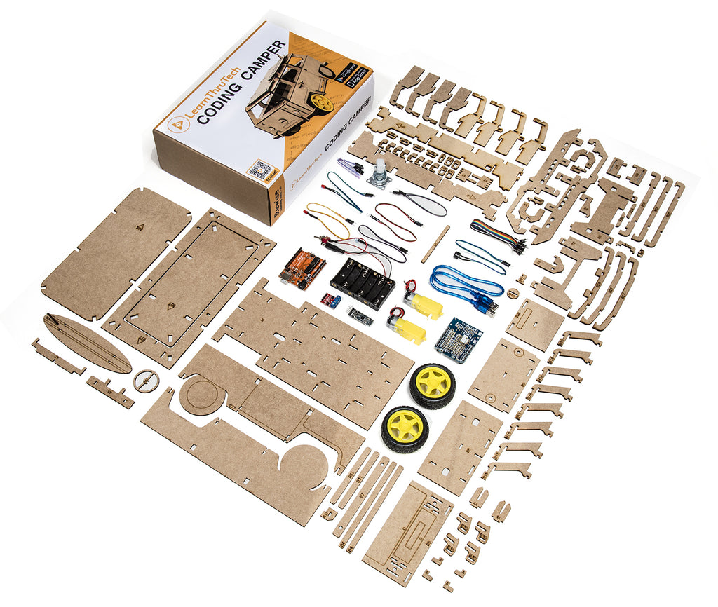 Unassembled Kit: Build your own remote controlled van. Kits come in pieces and require no glue or solder, making them eco-friendly and sustainable. Enjoy the satisfaction of building and painting/decorating your camper’s shell, configuring the electrical circuit and coding your microcontroller.