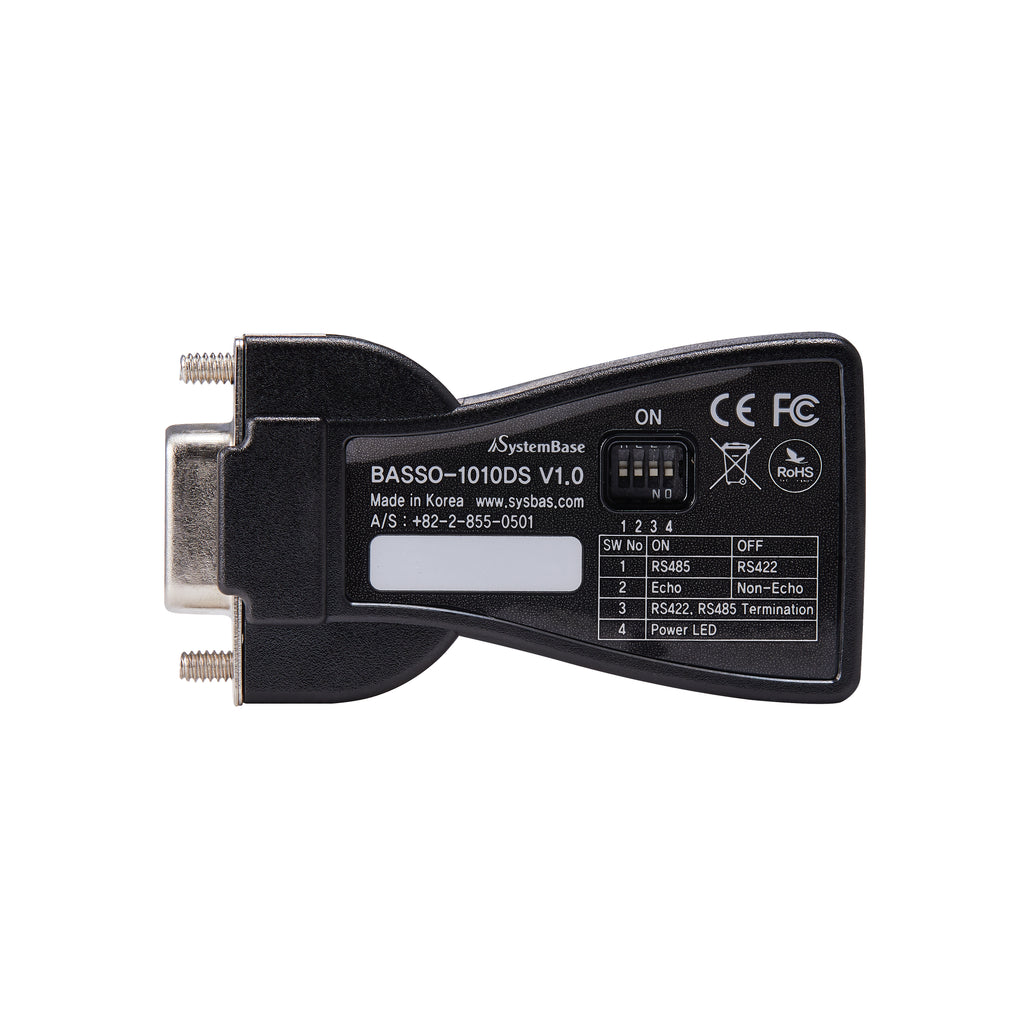 BASSO-1010DS converts RS-232 signals to RS-422 or RS-485 signals, and RS-422/485 signals to RS-232 signals.