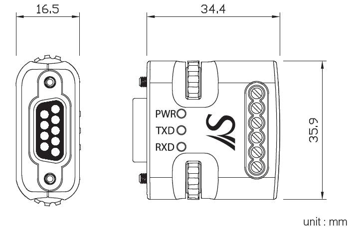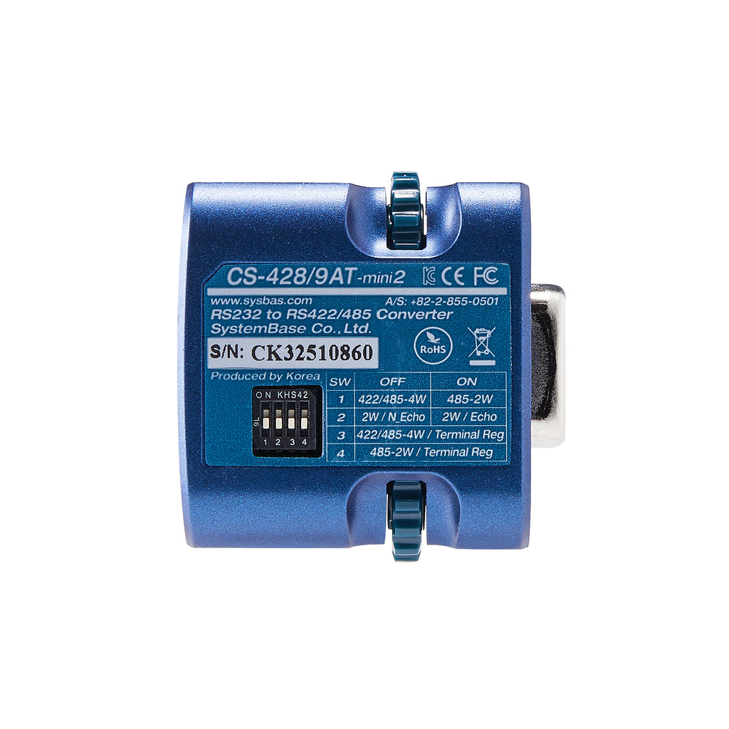 CS-428/9AT-mini2 converts RS232 signals to RS422 or 485 and is the smallest converter available on the market. It is a fast and efficient solution to overcome distance limitations of RS232 or for connecting to industrial devices with an RS422/RS485 interface.