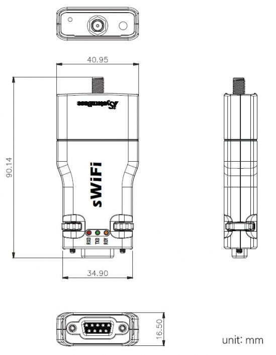 Equipped with a serial standard DB9 connector, sWiFi/all can be easily applicable to RS232 or RS422/485 equipment, providing wired communication speed up to 921.6Kbps and wireless up to 54Mbps.
