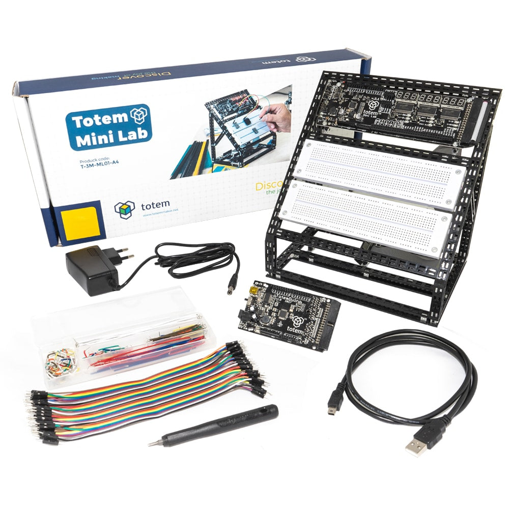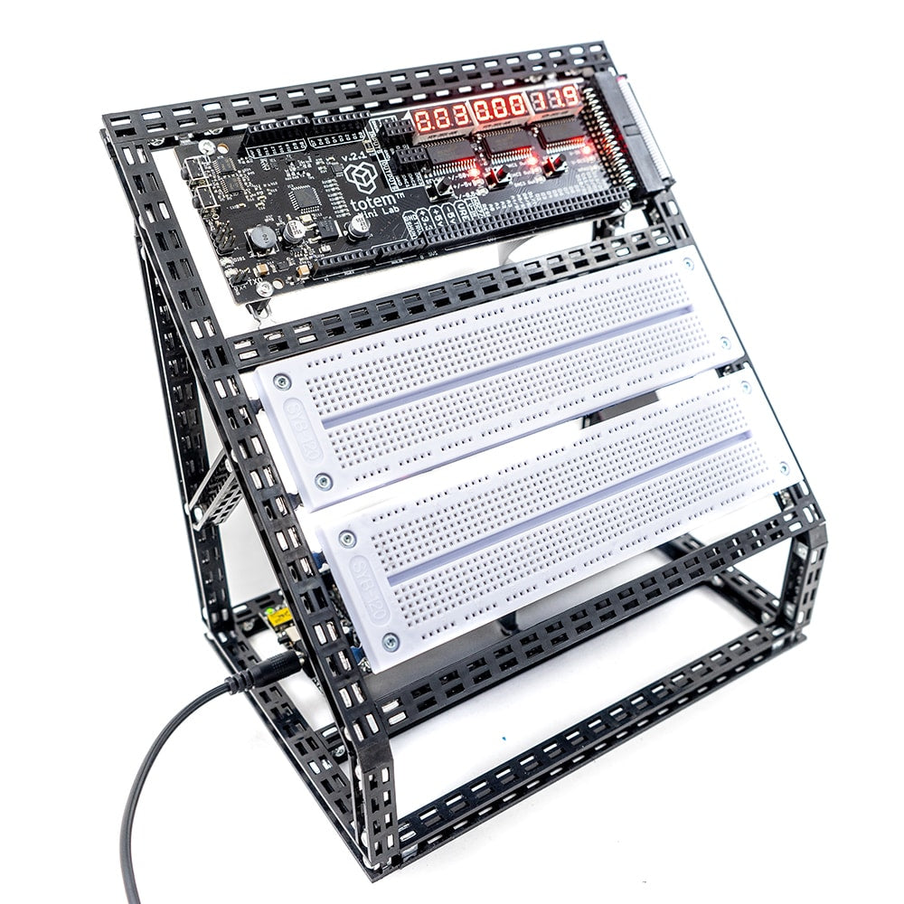 This laboratory is meant to be used together with Totem construction system. It allows users to build solid workbenches with integrated breadboards. Moreover, laboratory is compatible with I/O, Sensor and Audio expansion boards, which can expand the capabilities of the Mini Lab even further.