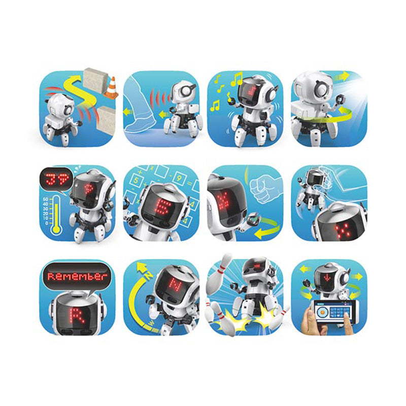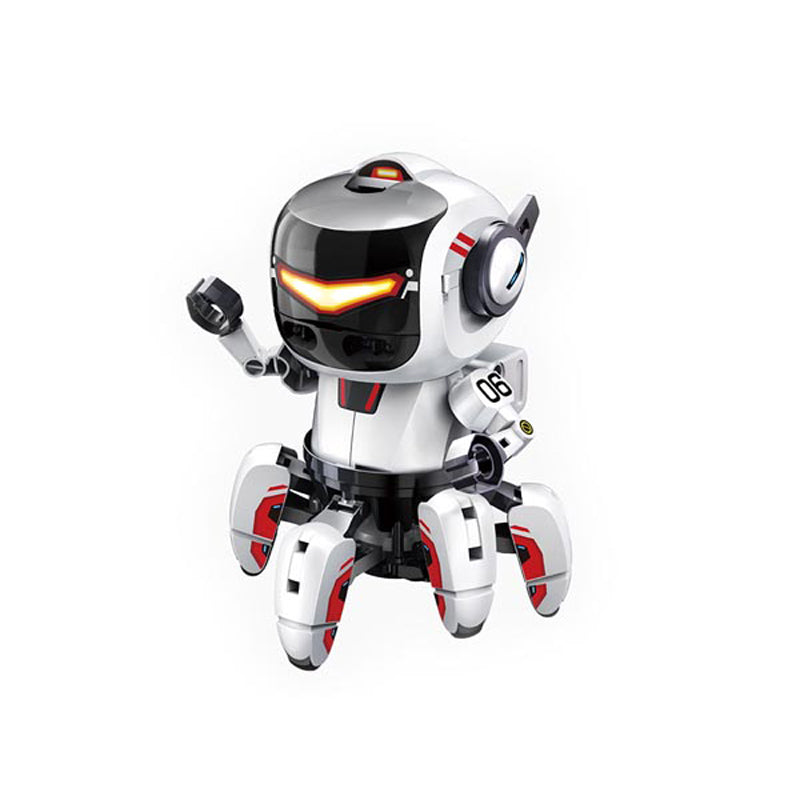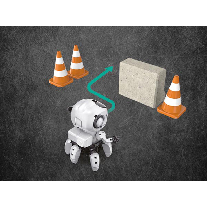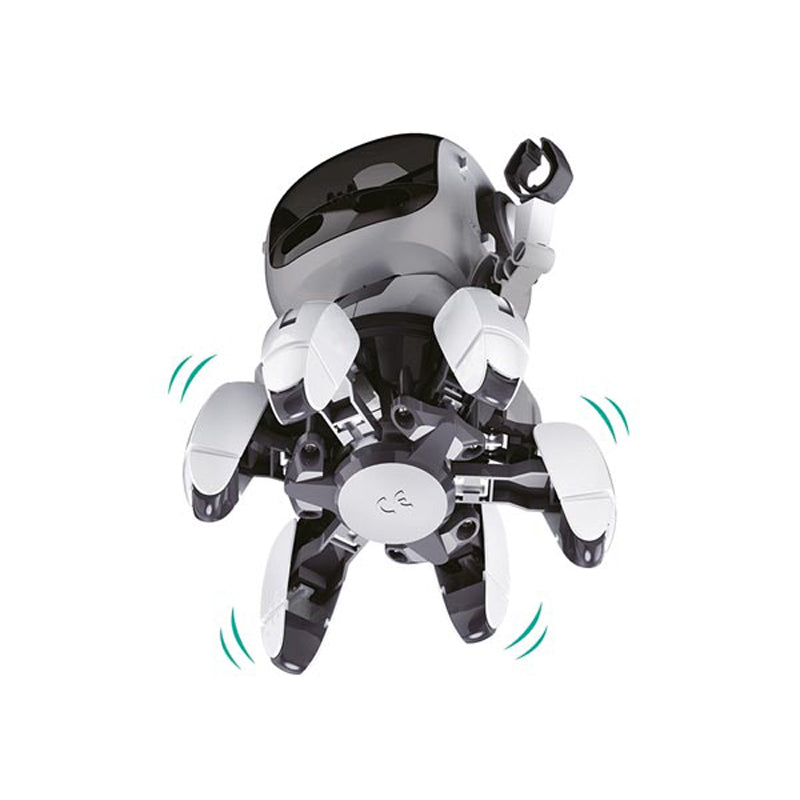 The Velleman Tobbie II micro:bit Kit (KSR20) is a construction robot, designed with 6 legs and a rotation-free body, possessing all necessary electronics, including a motor, IR sensor, and buzzer to make it active and interactive for fun.