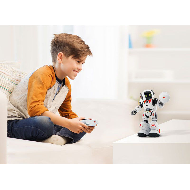 The Xtreme Bots James Remote & Programmable Robot is powered by 3x AA 1.5 V batteries (not included). Programm up to 50 actions and more than 20 functions.